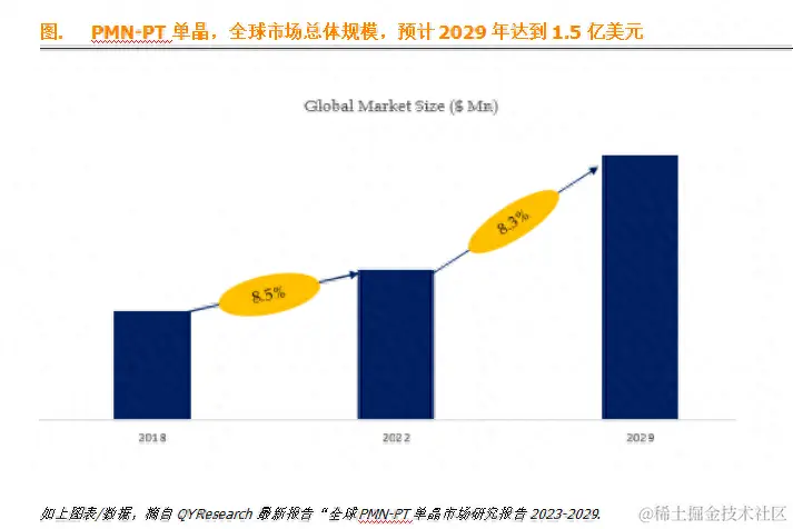 据QYResearch调研团队最新报告“全球PMN-PT单晶市场报告2023-2029”显示,预计2029年全球PMN-PT单晶市场规模将达到1.5亿美元,未来几年年复合增长率CAGR为8.3%。