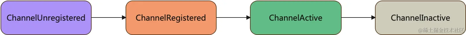 | ChannelUnregistered | Channel 已经被创建,但还未注册到 EventLoop。此时 isOpen() 返回 true,但 isRegistered() 返回 false。 |