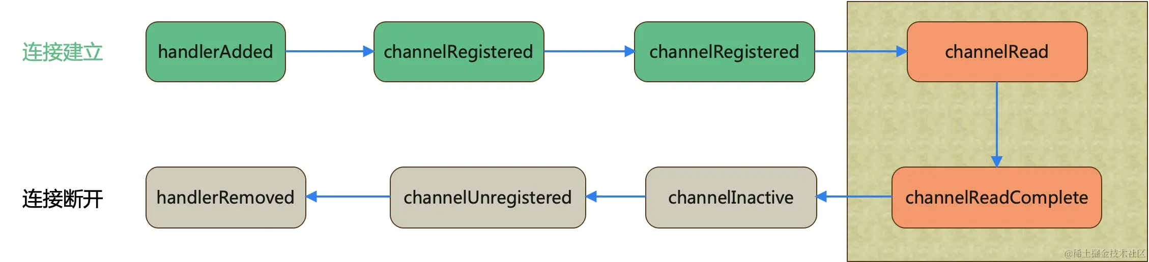 这里大明哥对 ChannelHandler 生命周期的方法做一个总结: