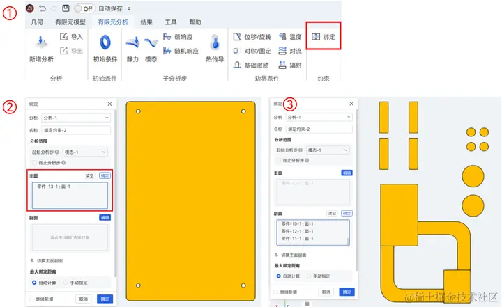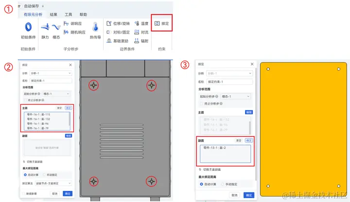 ① 再次点击有限元分析>绑定,弹出绑定弹窗;