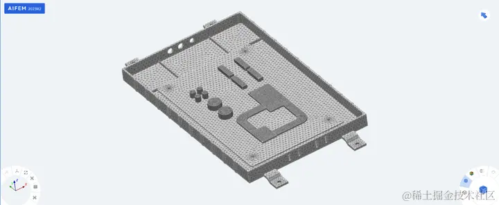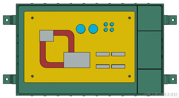 某型电器盒几何如图1-1所示,由绿色壳体、橙色PCB基板、灰色芯片、红色散热管和蓝色电容组成。