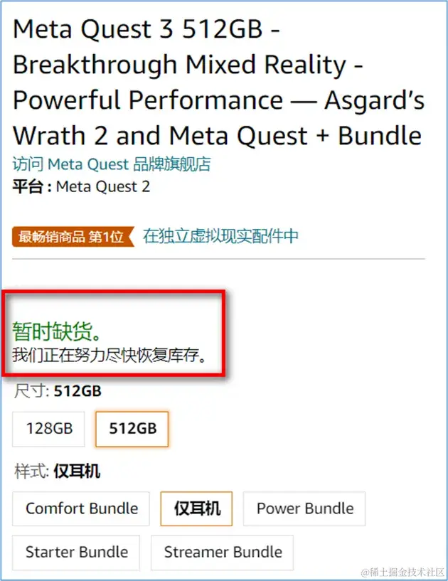 一经发售,Quest 3迅速问鼎美国亚马逊VR一体机销售冠军。**而作为背后的“隐形”力量,以歌尔股份为代表的中国供应链玩家显然是主要受益者。**对此,摩根士丹利预测,Quest 3今年出货量将达400万至500万部,主要硬件供应商歌尔等公司将受益。