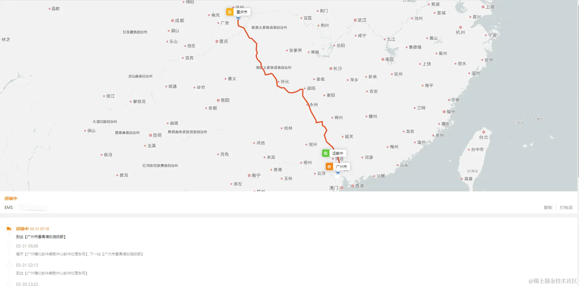 APISpace 的 全国快递物流地图轨迹查询,在地图中展示包裹运输轨迹,支持单号的订阅与推送。包括顺丰、圆通、申通等主流快递公司。