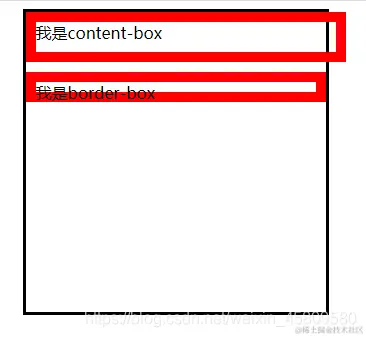 content-box是默认值,可以在上图中看到,该div溢出了两个边框的宽度,这是由于设置宽度时,设定的宽度不包含边框,所以在宽度与父元素可容纳宽度设置相同的情况下,边框的宽度溢出了,注意,这里没有设置内边距和外边距,如设置了,该div的溢出值为边框+内边距+外边距,因为此时的宽度未包括这三者。