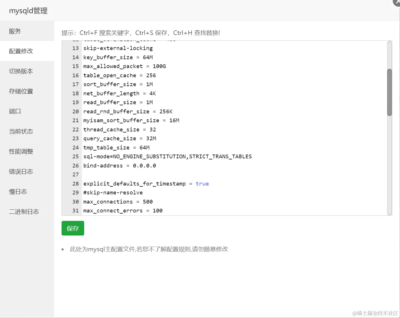 - 在宝塔面板上修改配置文件