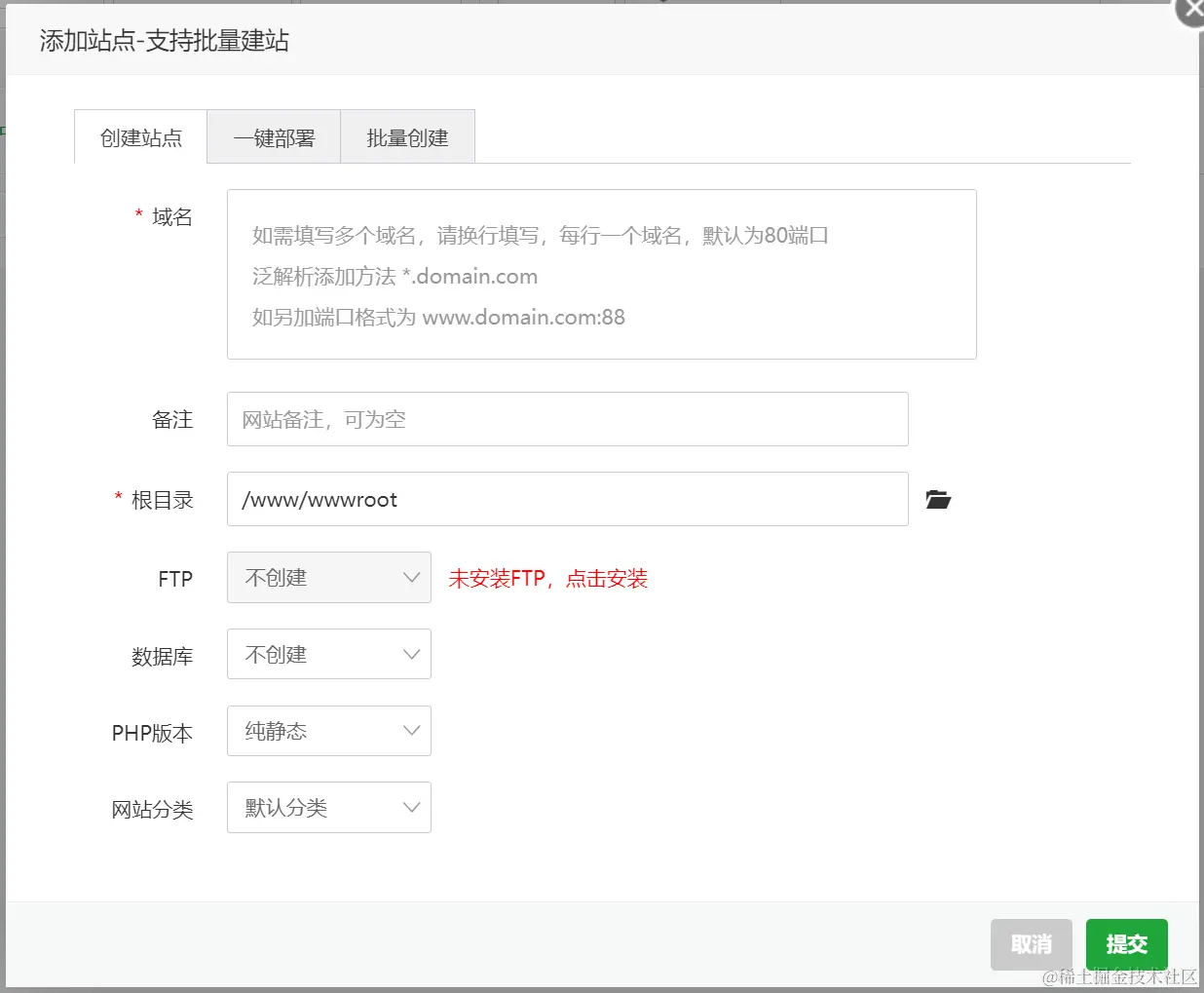 在网站的页面上,点击添加站点