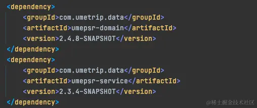 这里的依赖关系如下 本项目依赖于umepsr-service(2.3.4-SNAPSHOT),同时umepsr-service依赖于umepsr-domain (2.4.8-SNAPSHOT) 本项目的父pom中依赖于umepsr-domain (2.4.5)