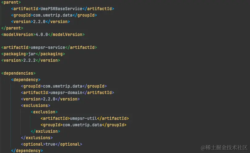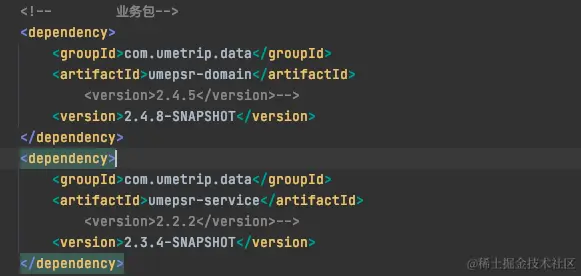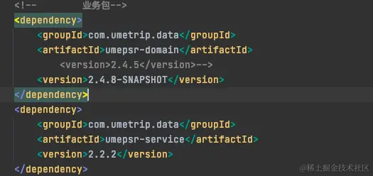 此时根据第一次定位的经验,我观察到umepsr-service的父pom中umepsr-domain版本为2.2.2。