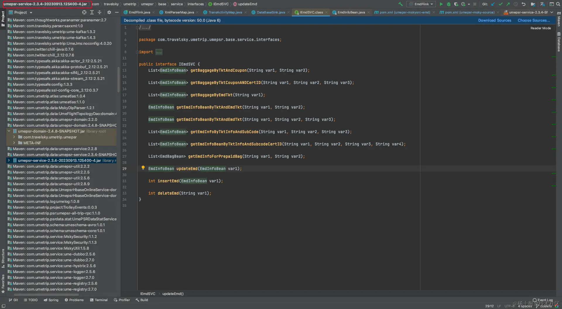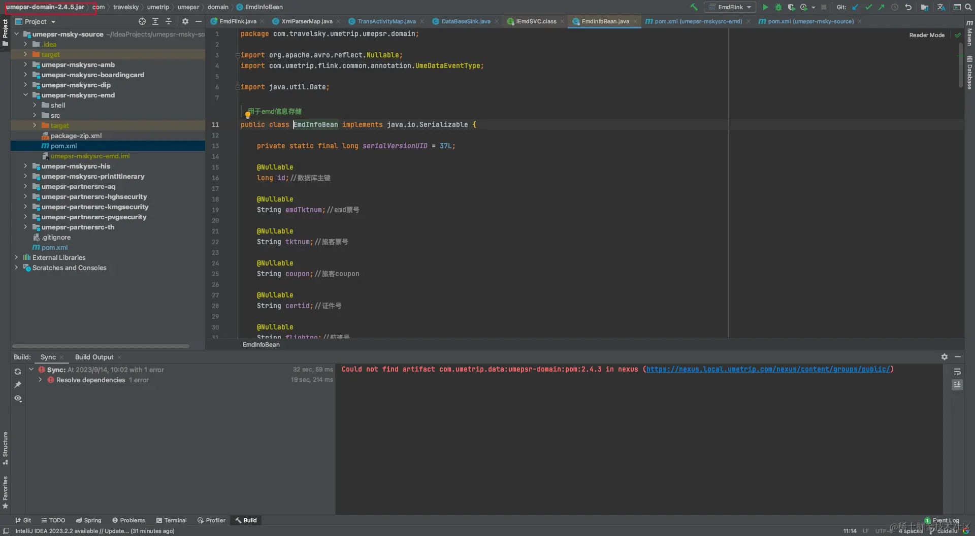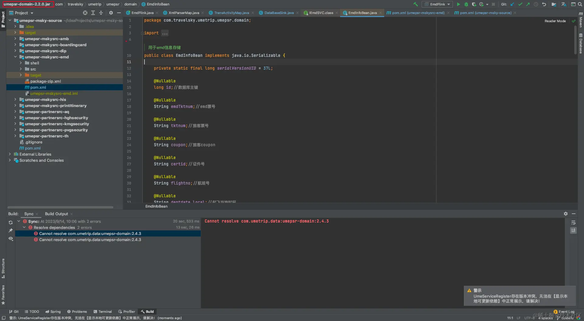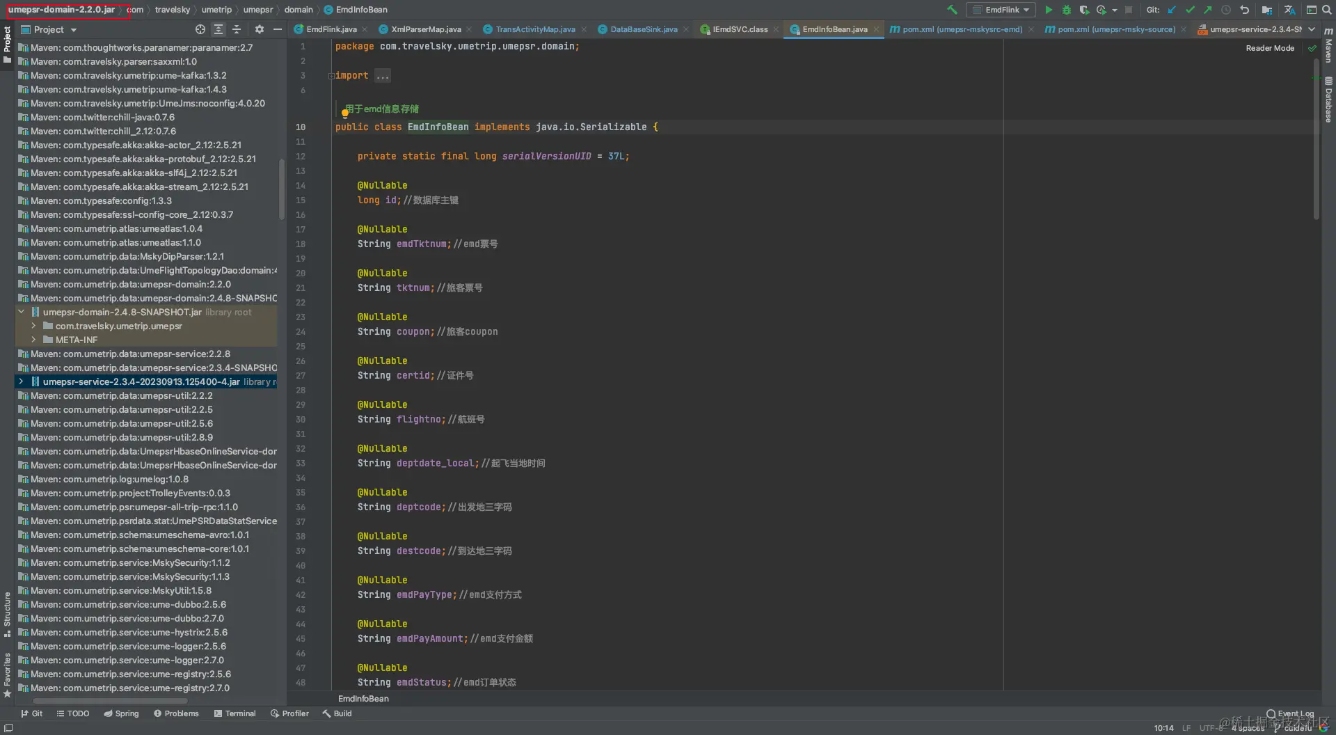 EmdInfoBean,如图 umepsr-domain 版本就变为了2.4.5