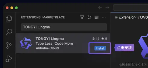 - 从插件市场安装:搜索:TONGYI Lingma,并点击安装