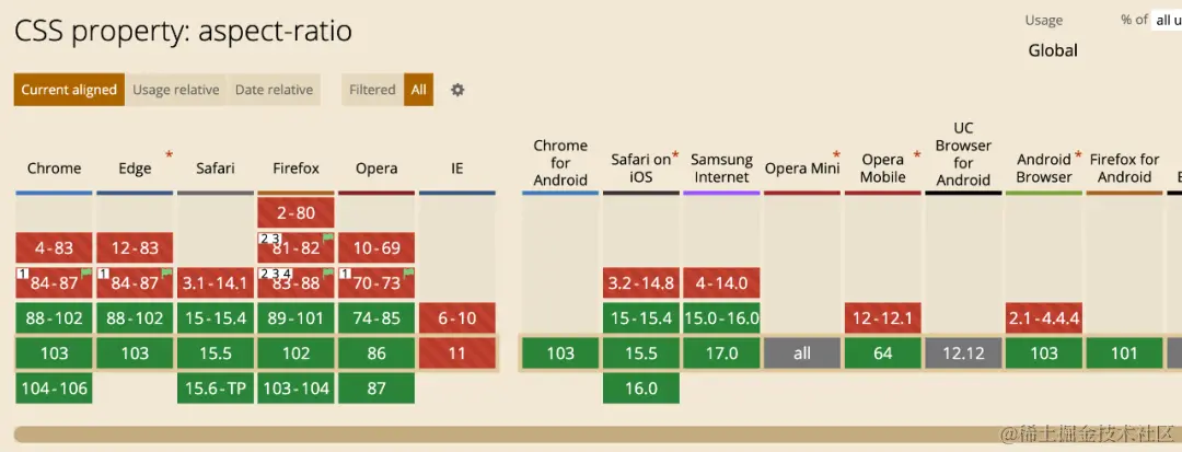 新的 CSS 属性:aspect-ratio 为元素设置宽高比 江城开朗的豌豆 2023-11-01 52 阅读1分钟 .img_container { width: 100%; aspect-ratio: 16 / 9; } 用于防止图片加载后对页面布局的影响,亦可用于媒体查询
