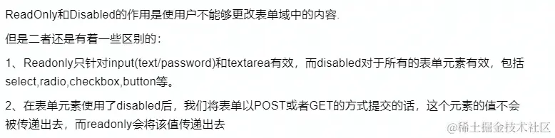 问他“ReadOnly和Disabled有何区别?”