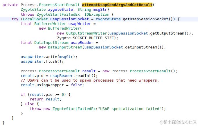 at android.os.ZygoteProcess.attemptUsapSendArgsAndGetResult(ZygoteProcess.java:540)