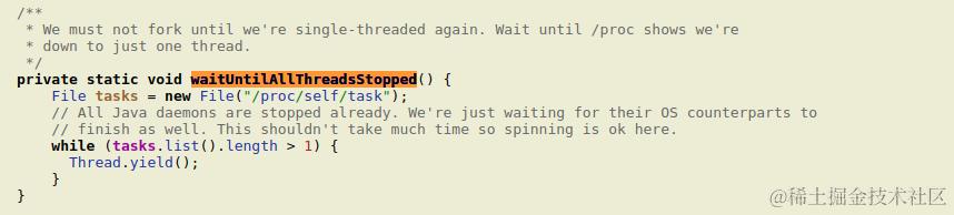 Java API 'ZygoteHooks.waitUntilAllThreadsStopped' 已经运行了很多年,但为什么最近才发生此类问题,突然变得不可靠,其原因是最新的内核修复了一个小问题导致。Commit 0658a0961b0ac ("procfs: do not list TID 0 in /proc/<pid>/task")。