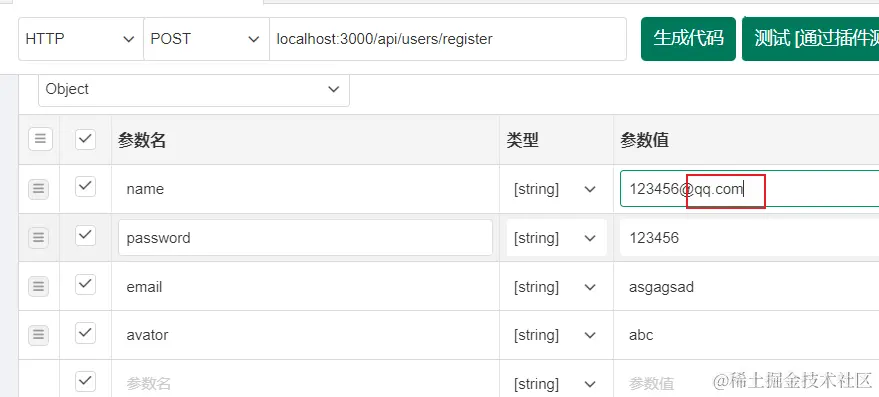 当我们使用测试工具测试邮箱时,我们填写邮箱时尽量不要打 .com 不然会被解析成对象,导致数据出错