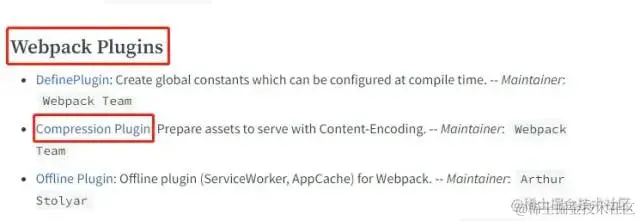 webpack 文档 提供插件合集中就包含了该插件,它的作用就是: Prepare compressed versions of assets to serve them with Content-Encoding.