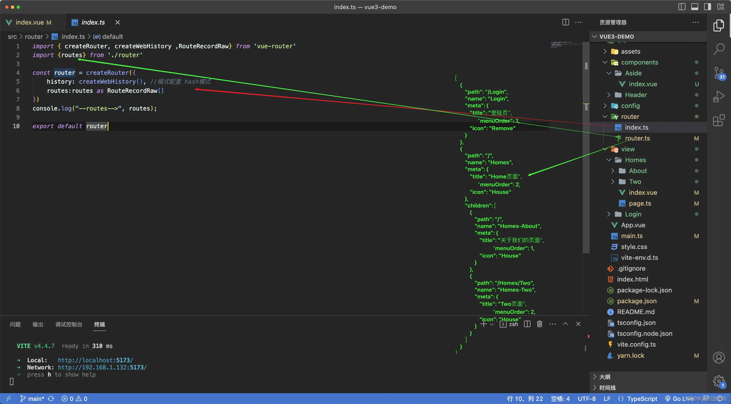 📟 三、在index.js文件夹下进行vue路由配置