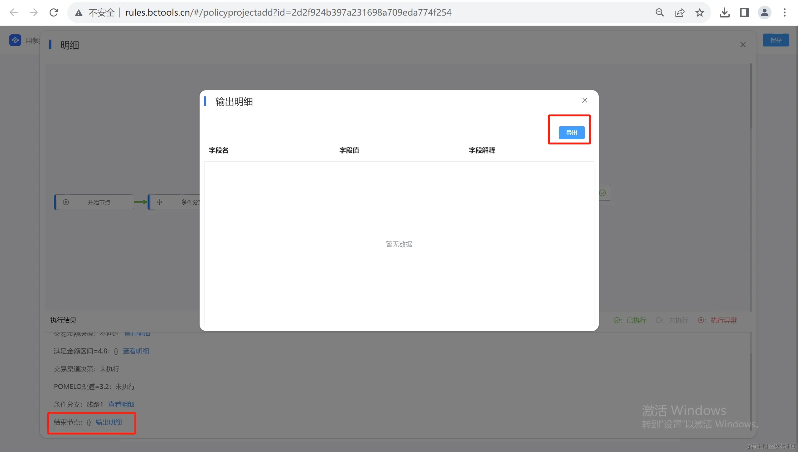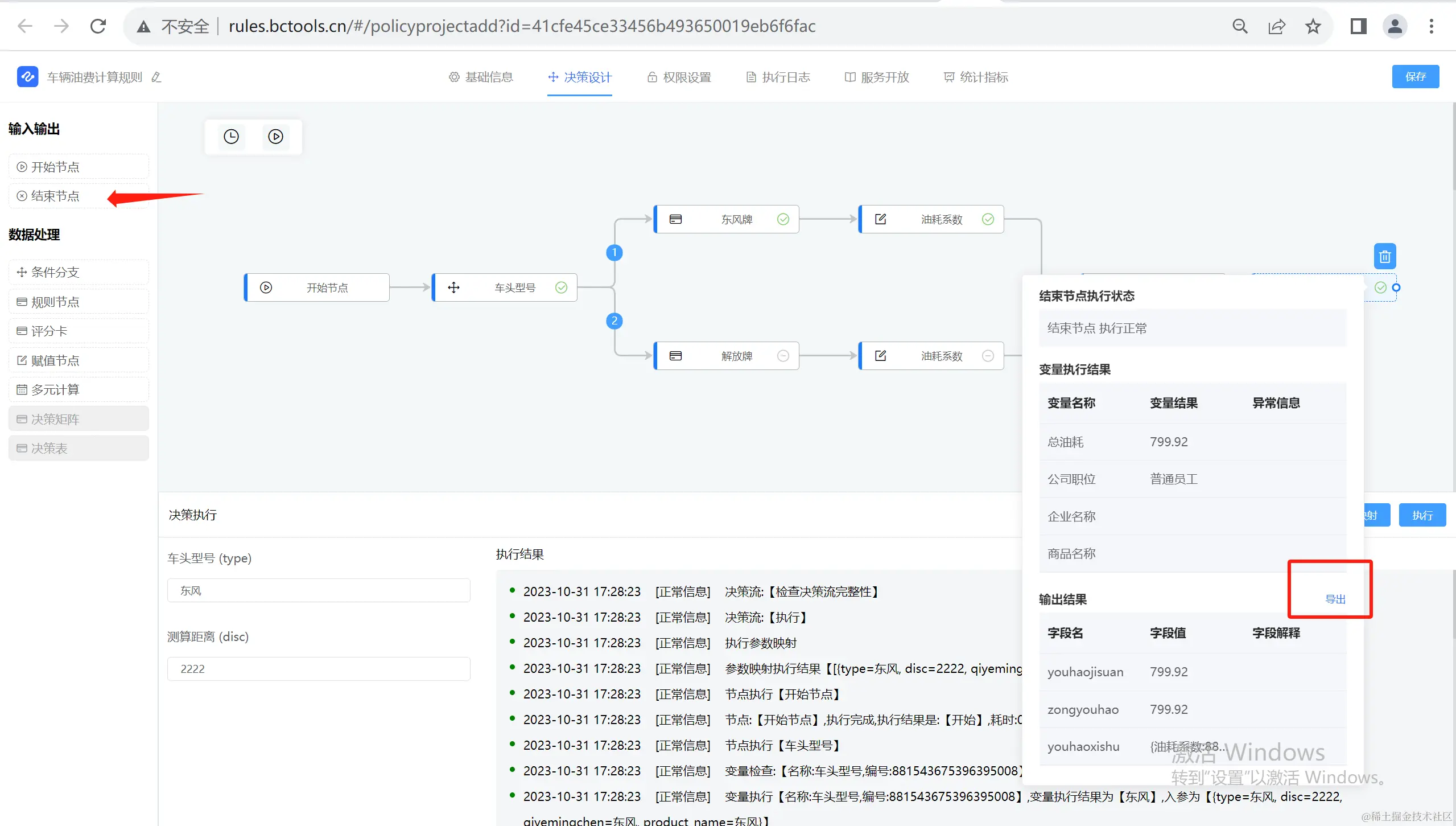 在决策流程的结束节点,可以将决策结果导出为Excel文件。这个功能为用户提供了更多的灵活性和便利性,使他们能够轻松地将决策结果数据进行进一步的分析和处理。