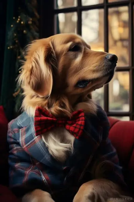金毛寻回犬穿格纹西装