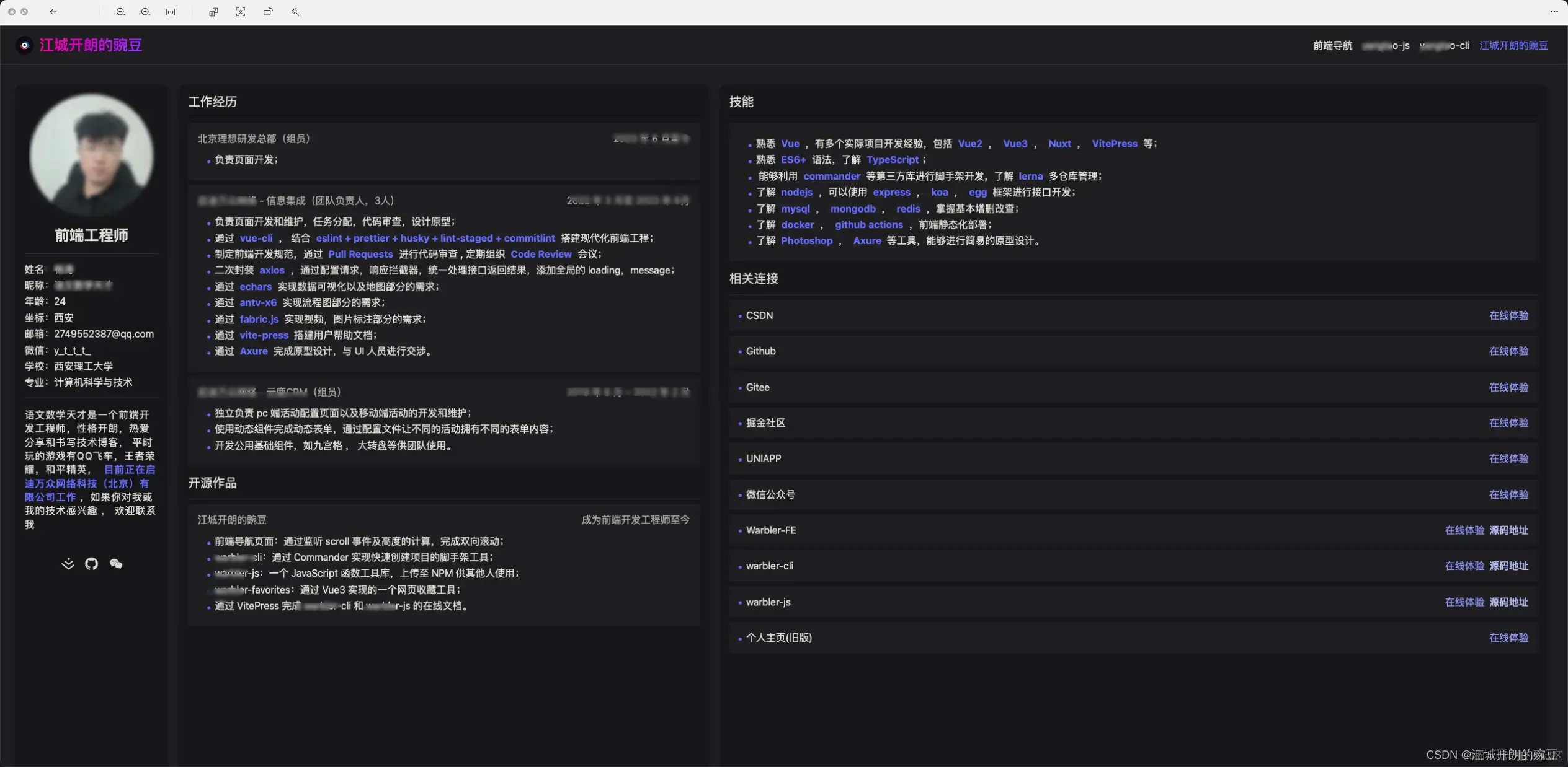 最后的 江城开朗的豌豆 其实就是我找工作时候的简历,后面打算改造成一个数据中心。