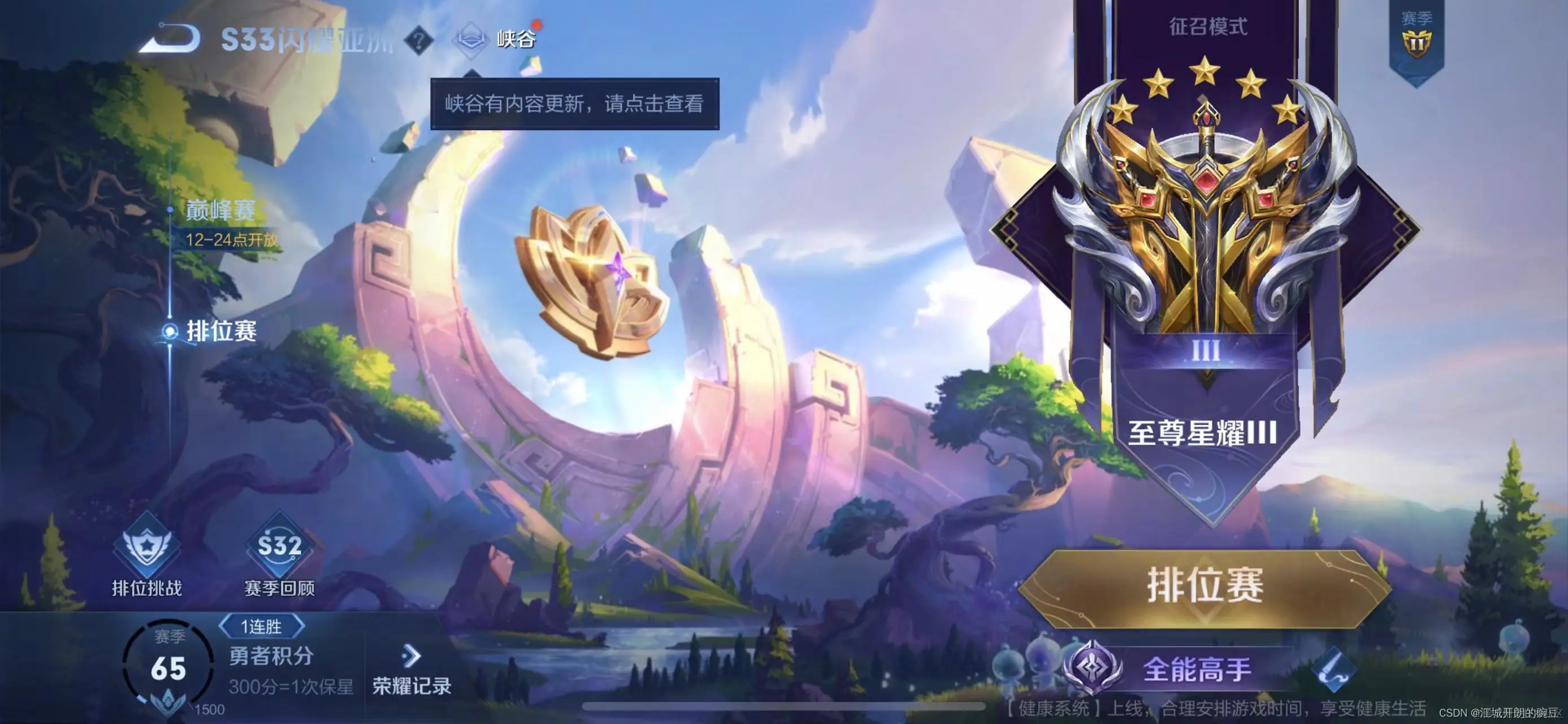 王者荣耀: 现在还在一如既往的玩着王者,王者实在是上不动了,而且自从出了巅峰赛以后,英雄的国服也难上了,除非一直玩一个英雄,而我又不是这种玩家。