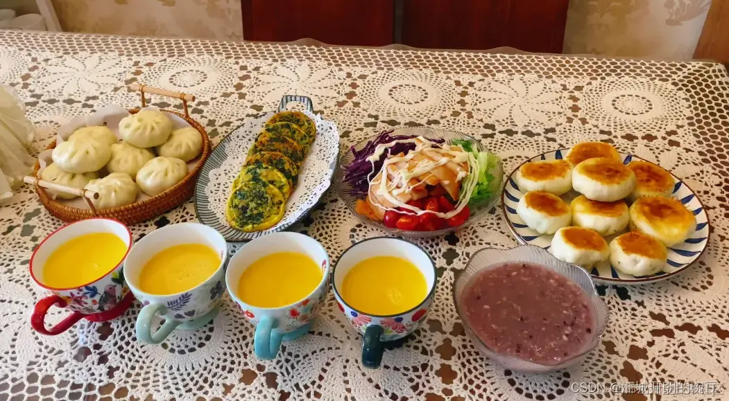早晨,阳光透过窗户洒进屋内,家人们早早地起床准备。大家一起动手准备丰盛的早餐,桌上摆满了各式各样的美食。热腾腾的包子、香喷喷的油条、口感细腻的稀饭,香气四溢,诱人食欲。大家围坐在餐桌旁,开怀畅谈,笑声不断,幸福洋溢在每个人的脸上。