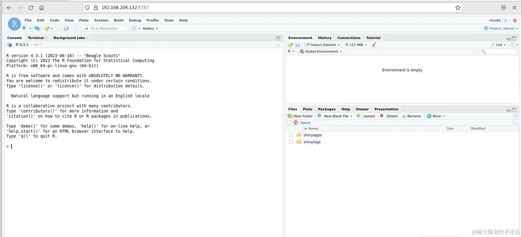 RStudio Server 使你能够在 Linux 服务器上运行你所熟悉和喜爱的 RStudio IDE,并通过 Web 浏览器进行访问,从而将 RStudio IDE 的强大功能和工作效率带到基于服务器的集中式环境中。