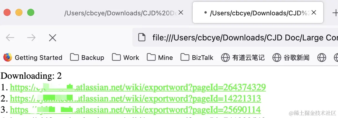 https://xxx.atlassian.net/wiki/spaces/Doc/pages/[0-9]{2,20} - 在HTML中写入如下脚本将Body部分的链接替换为实际链接,脚本为自动按间隔时间访问链接导出文章为Word文档。
