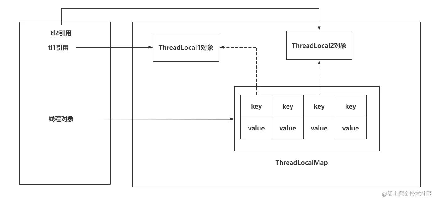 - 每一个现有都自己独立的ThreadLocalMap,再基于ThreadLocal对象本身作为key,对value进行存取