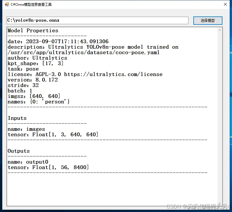 IReadOnlyDictionary<string, NodeMetadata> OutputMetadata = onnx_session.OutputMetadata;