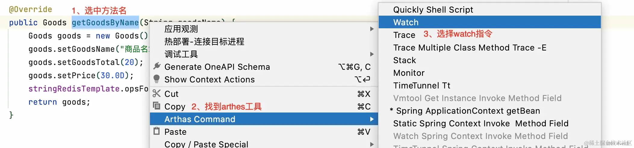 使用idea插件生成方法的monitor命令,贴到arthes控制台,如下: