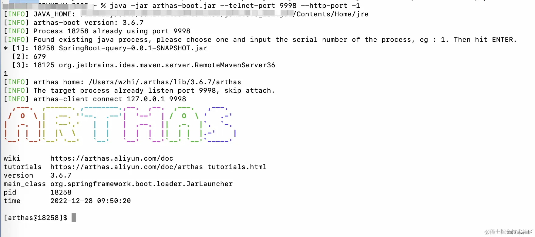 java -jar arthas-boot.jar