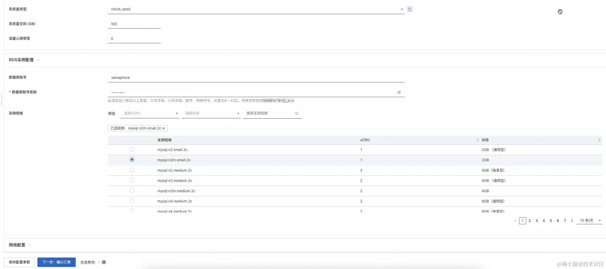| RDS 实例配置 | 实例规格 | mysql.n2m.small.2c | 使用的 RDS 数据库实例规格。 |