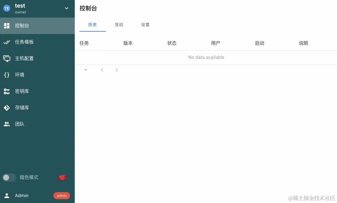 - 通过服务实例访问 Ansible Semaphore。