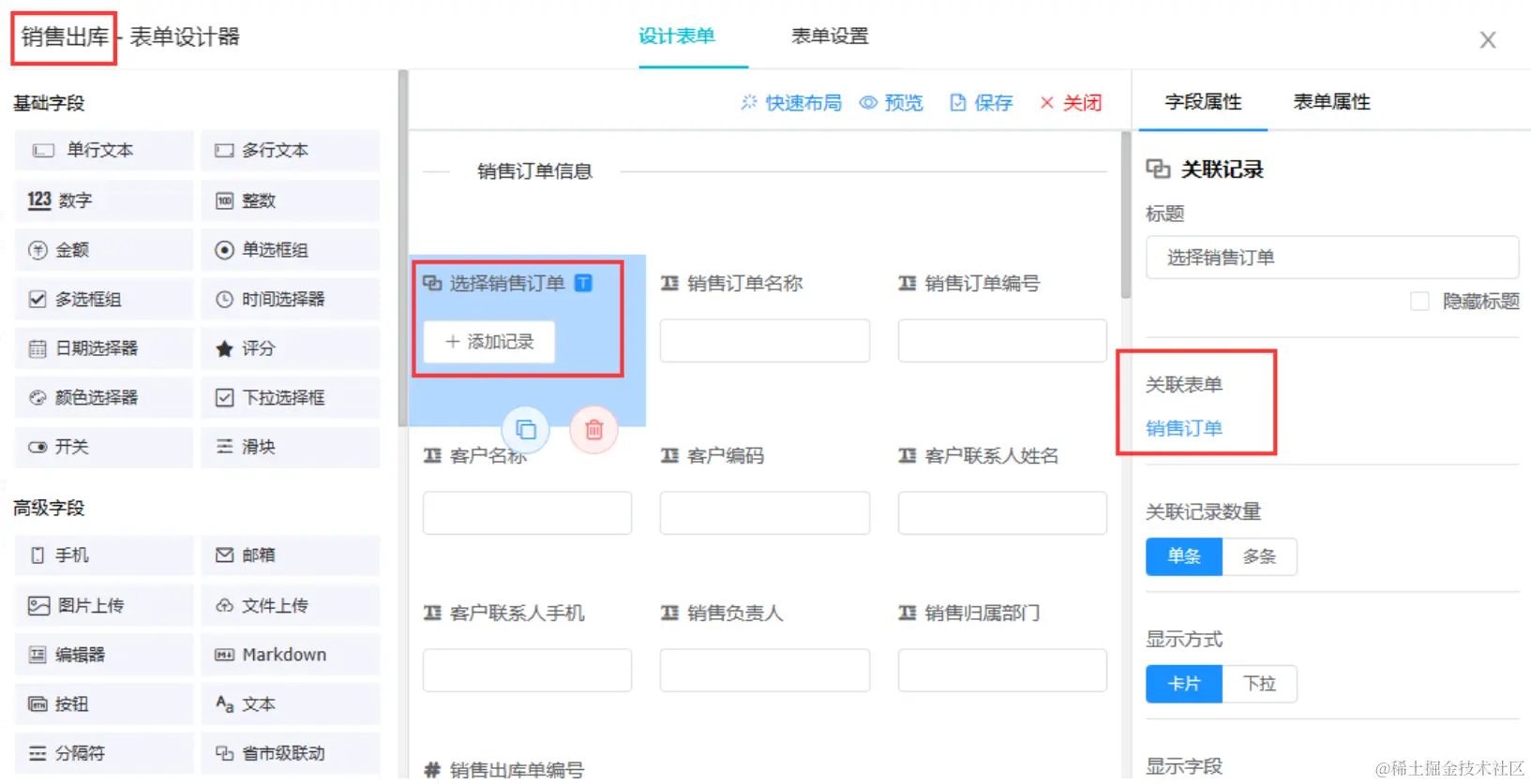 “销售出库”中配置关联记录“销售订单”