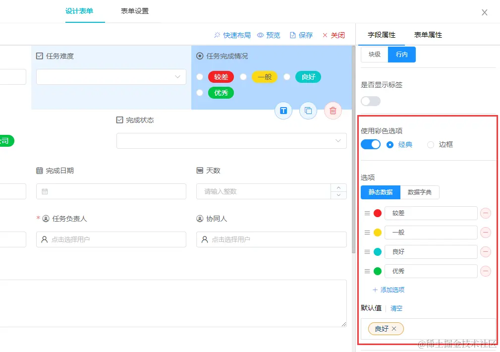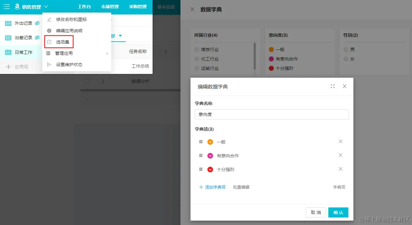 - 如需使用字典,在选项集数据字典中设置颜色即可