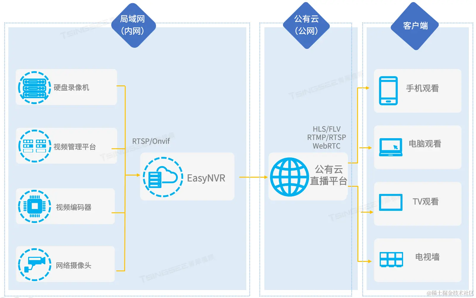 随着安防市场视频监控需求的不断变化,视频监控平台EasyNVR的功能也在不断更新迭代。平台基于RTSP/Onvif协议,支持轻量化接入大量前端监控设备,并实现对现场的视频监控。平台拓展性强、支持二次开发与集成,在场景应用上,EasyNVR也已经在大量的实际项目中落地使用,如:智慧工地、智慧安防、智慧工厂、智慧水利等。感兴趣的用户可以前往演示平台进行体验或部署测试。