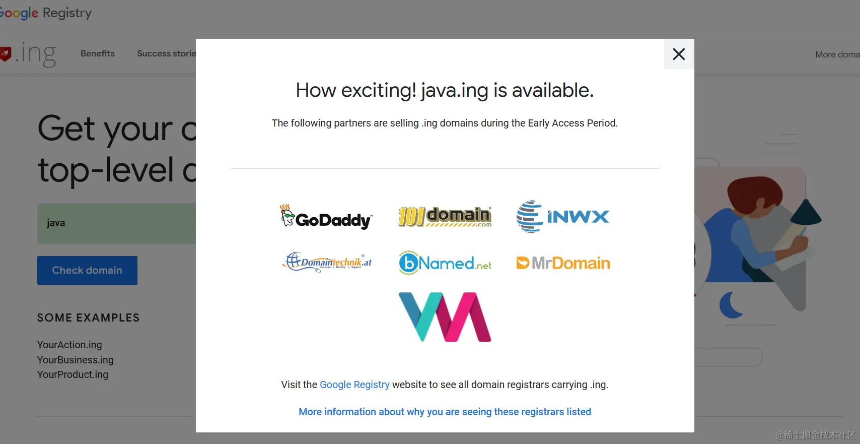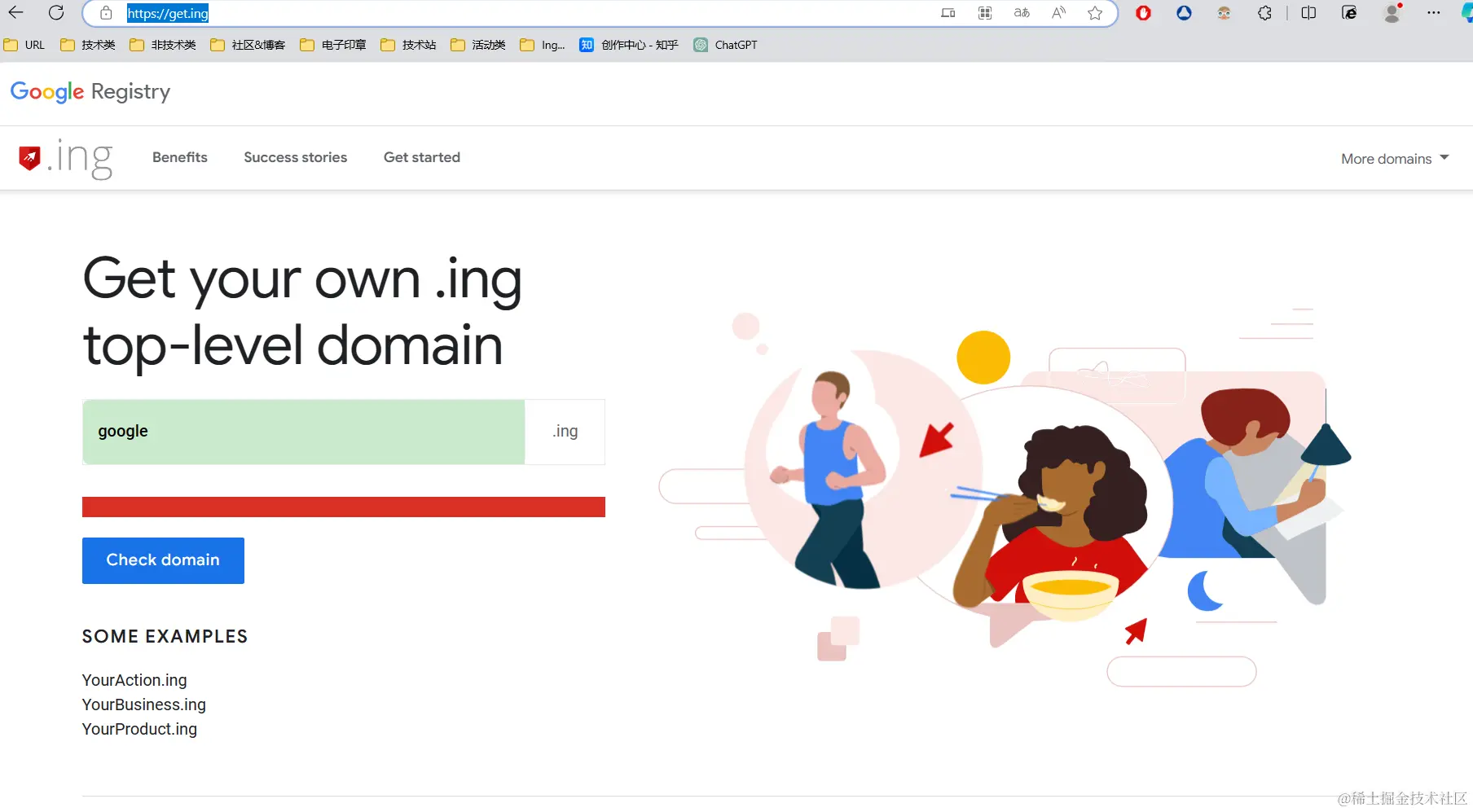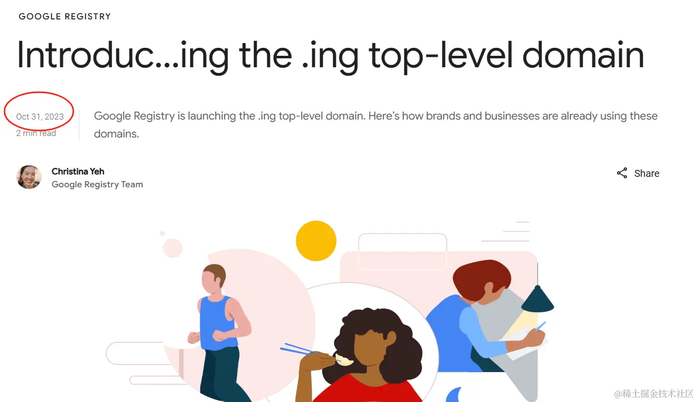 2023年11月1日(Oct31,2023美国与中国时差)Google宣布,正式推出.ing域名,这是一种新的顶级域名,旨在为用户提供更多的选择和创意。.ing域名是由Google和国际互联网名称与数字地址分配机构(ICANN)合作开发的,它可以让用户使用动词或动词短语作为域名,例如cooking.ing, running.ing, learning.ing等。