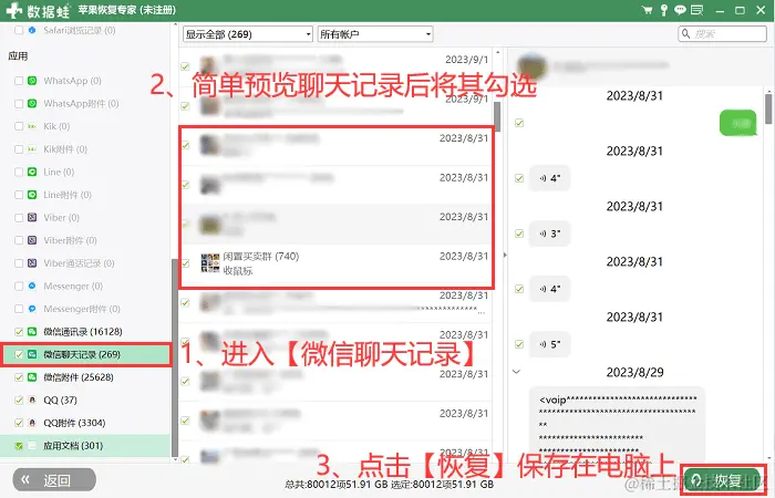 如何单独导出一个人的聊天记录?如果某个好友的聊天记录对您来说非常重要,那么可以使用第三方软件来单独导出该聊天记录。小编要介绍的这款软件叫做数据蛙苹果恢复专家,大家可以先下载软件进行免费扫描体验,看看是否能够扫描出您想要导出的聊天记录。