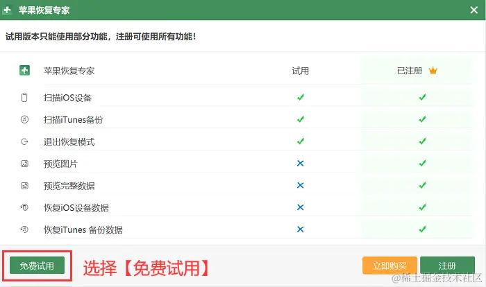 步骤1:软件在电脑上安装完毕后,双击进入软件。如果是第一次使用软件的用户,建议先进行免费试用。