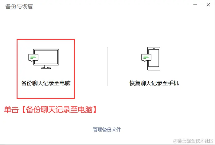 步骤2:在后续弹出页面中选择【备份与恢复】选项,然后单击【备份聊天记录至电脑】即可将需要的聊天记录备份到电脑上。