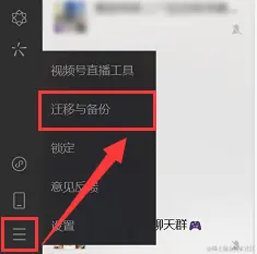 步骤1:在电脑端登录您的微信,然后在微信主界面点击左下角的【三横线】标志,点击【迁移与备份】功能。