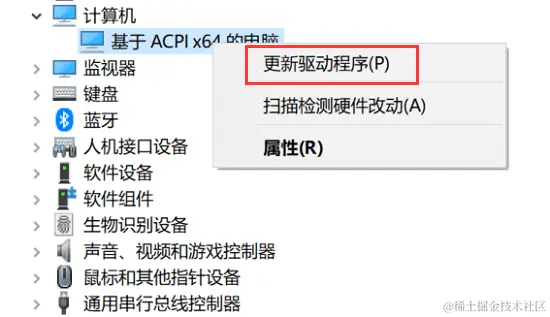 步骤2:找到计算机,点击【更新驱动程序】 ;
