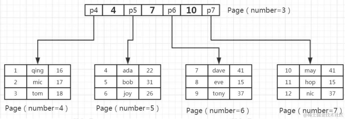 举例:一个页放 3 行数据。