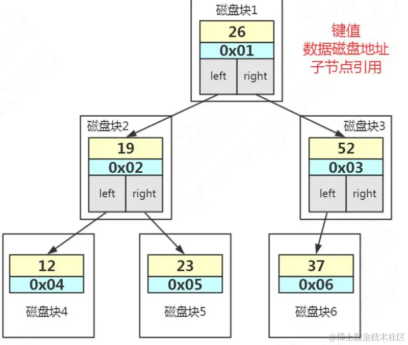 比如上面这张图,我们一张表里面有 6 条数据,当我们查询 id=37 的时候,要查询两个子节点,就需要跟磁盘交互 3 次,如果我们有几百万的数据呢?这个时间更加难以估计。