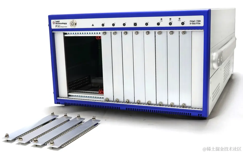 一个PXIe机箱由几项组件所组成,包含了一个机箱(含背板+电源)、系统控制器以及数个外设模块,当然务必有鼠标键盘显示器。