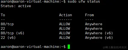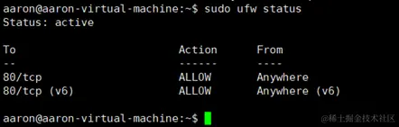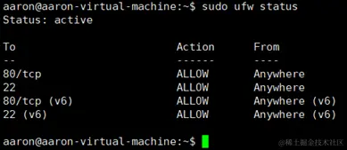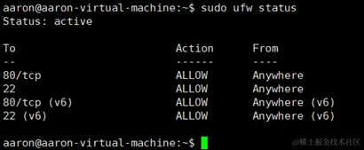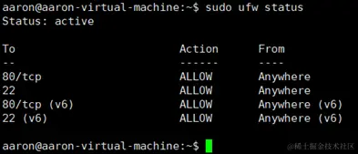 sudo ufw status //查看防火墙的状态