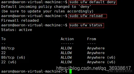 sudo ufw reload //重启防火墙,添加规则以后需要使用该命令进行重启防火墙