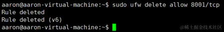 sudo ufw delete allow 8001/tcp //关闭21端口