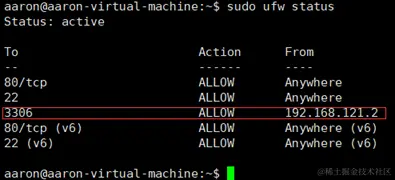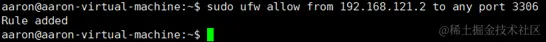sudo ufw allow from 192.168.121.2 to any port 3306